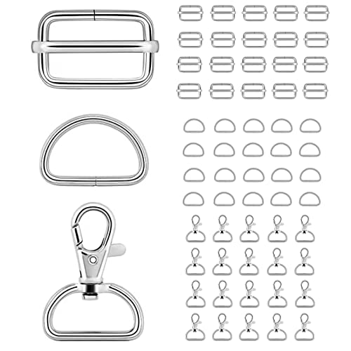 WiDream 60 stycken metallvridbara karbinhakar, skjutreglage, nyckelringar D-ringar 25 mm, för nyckelband plånbok väska rem hundhalsband ryggsäck gör-det-själv sömnad tillbehör, silver, 44mm