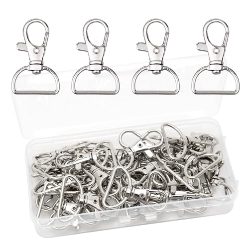 Weniubit Set med 40 silver D-ring roterande nyckelringar, 360° vridbar, inre bredd 25 mm, karbinhake för ryggsäck, väska, gör-det-själv