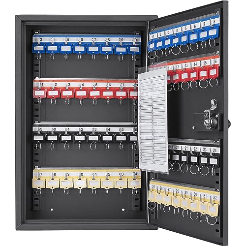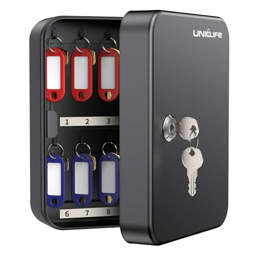 Uniclife 20 positioners nyckelskåp med nyckellås väggmonterad svart säkerhetsförvaringslåda stål nyckelorganiserare med färgglada nyckeletiketter klistermärken och krokar