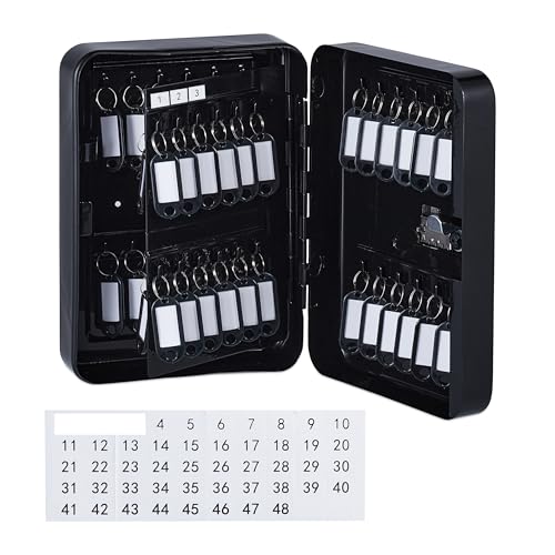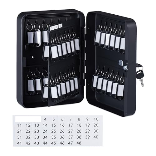 Relaxdays Låsbart nyckelskåp, 48 krokar, med nyckelringar, HBD: ca 25 x 18 x 8 cm, nyckelskåp, svart