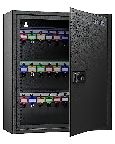 Uniclife 60 positioner, nyckelskåp med kombination och nyckellås, återställningsbart, svart, digital säkerhetslåda, nyckelarrangör med justerbara hyllor