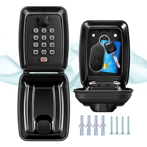 Nyckelskåp för utomhusbruk, vattentät, 12-siffrig kombinationslåda, väderbeständigt skydd, polisgodkänt för hem, garage, kontor, Airbnb, skola (svart)
