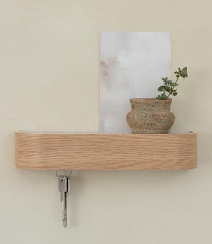 KAZAI. Nyckelhållare 'Toke' | Minimalistisk nyckelkrokdesign från Berlin | Modern nyckelhylla i trä med avlastningsyta | Nyckelskåp som hallmöbel för väggen | Ek, vit