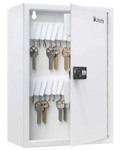 Uniclife 40 positioner nyckelskåp kombinationslås återställningsbar vit digital säkerhetsförvaringslåda stål nyckelorganiserare slitsat, vita nyckeltagtiketter