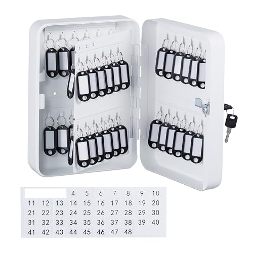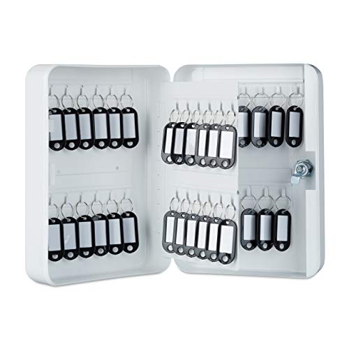 Relaxdays Låsbart nyckelskåp, 48 krokar, nyckelskåp, HBD: ca 25 x 18 x 8 cm, nyckelskåp, vit