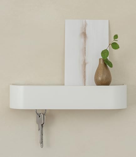 KAZAI. Nyckelhållare 'Toke' | Minimalistisk nyckelkrokdesign från Berlin | Modern nyckelhylla i trä med avlastningsyta | Nyckelskåp som hallmöbel för väggen | Vit