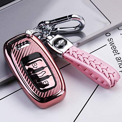 ontto Smart bilnyckelfodral skydd för Audi A4 A5 A6 A7 A8 RS4 RS5 RS6 RS7 Q5 Q8 R8 S4 S5 S6 S7 2016 2015 2014 nyckelskal nyckelhållare TPU nyckelskydd fodral 3 knappars rosa