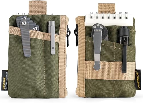 VIPERADE VE28 6-i-1 Mini EDC-väska Miniväska Organizer med 6 fickor, Liten EDC Pocket Organizer Mini Multitool Väska Nyckelväska Liten herrplånbok Liten ryggsäck Extra väska - Grön + Khaki