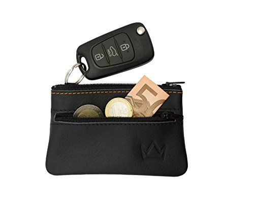 MIKA 28063901 – nyckelring stor gjord av äkta läder/sadelläder, mini-plånbok som nyckelfodral med myntfack med tryckknapp, nyckelficka för Kleingeld i svart, nyckelväska Ø ca 9 cm