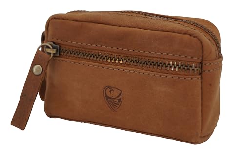 Alassio 42242 – nyckelfodral av äkta läder, nyckelväska med 2 nyckelringar, extra blixtlåsfack och 2 fickor, nyckelorganiserare i brunt, nyckelfodral ca 7,5 x 10 cm, BRUN, ca. 7,5 x 10 x 1 cm,