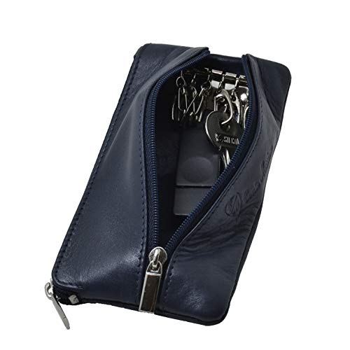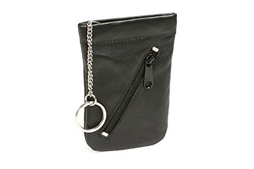 Alassio 42247 – nyckelfodral av äkta läder, nyckelväska med 2 nyckelringar, extra blixtlåsfack och 2 fickor, nyckelorganiserare i svart, nyckelfodral ca 7,5 x 10 cm, svart, ca. 7,5 x 10 x 1 cm,