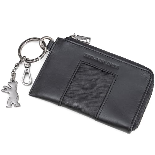 Berliner Bags nyckelfodral Julian, nyckelväska av läder med nyckelring, liten plånbok med TÜV-testat RFID-skydd, för kvinnor och män, svart, Premium