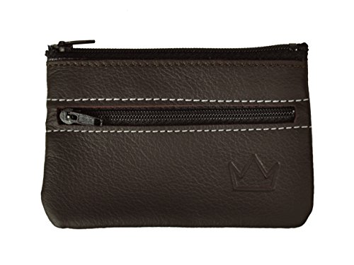 Kontakter äkta läder dubbel dragkedja bilnyckelfodral hållare nyckelväska (kaffe), Kaffe, En storlek, vintage