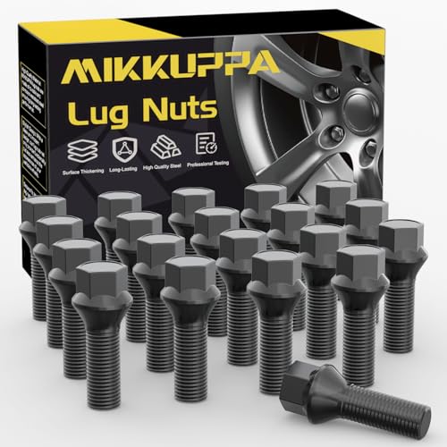20 stycken MIKKUPPA hjulskruvar hjulbultar M12 x 1,5 – skaftlängd: 26 mm, konisk krage 60 °, nyckelvidd: 17 mm (svart)