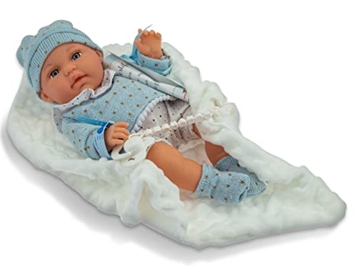 Llorens 1063597 Docka med blå ögon och mjuk kropp, babydocka inklusive outfit, napp, nappkedja och blå kaninfilt, dockpojke, nyfödd, 35 cm