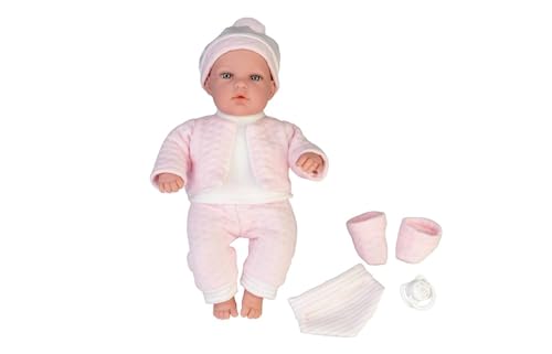 JC TOYS La Newborn-dockan nyfödd 38 cm, tillverkad av mjuk vinyl, kunglig kollektion, kläder med jouy-design, napp och plysch, flicka, rosa, designad i Spanien av Berenguer, 2 år
