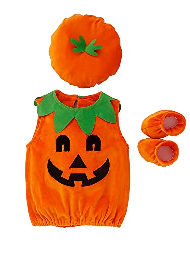 Felcia 3 st nyfödd baby flicka pojke halloween pumpa sparkdräkt kostymer bodysuit + hatt + set, Orange, 0-6 månader