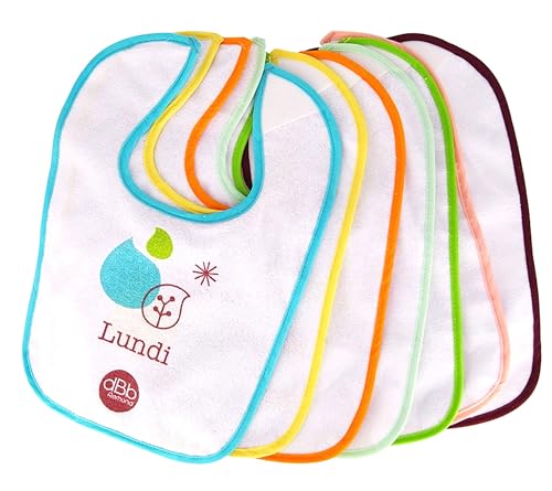 dBb Remond Set med 7 haklappar, plastfodrad bomull, babyhaklappar, nyfödd, flicka och pojke, kardborreknäppning