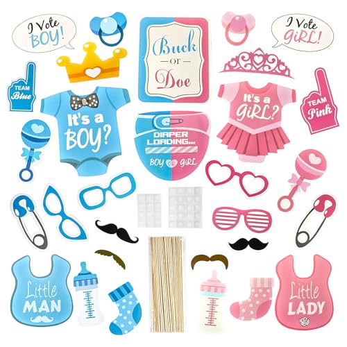 Kön avslöjar festdeko set, 30 st fotocall kön avslöjar festtillbehör, flicka och pojke baby shower spel fotobås rekvisita, pojke eller flicka dusch födelsedagsfest, poser håller fest, nyfödd