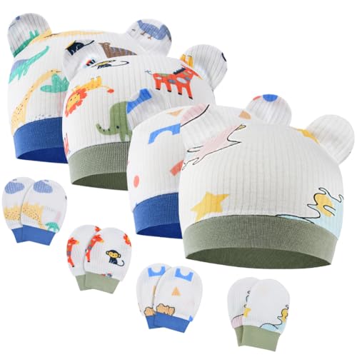DRESHOW Set med Mössor och Vantar för Nyfödd Baby Sjukhusmössa Babymössa med Rosett Babyhandskar i Bomull Inga Repor Vantar för 0-6 Månader