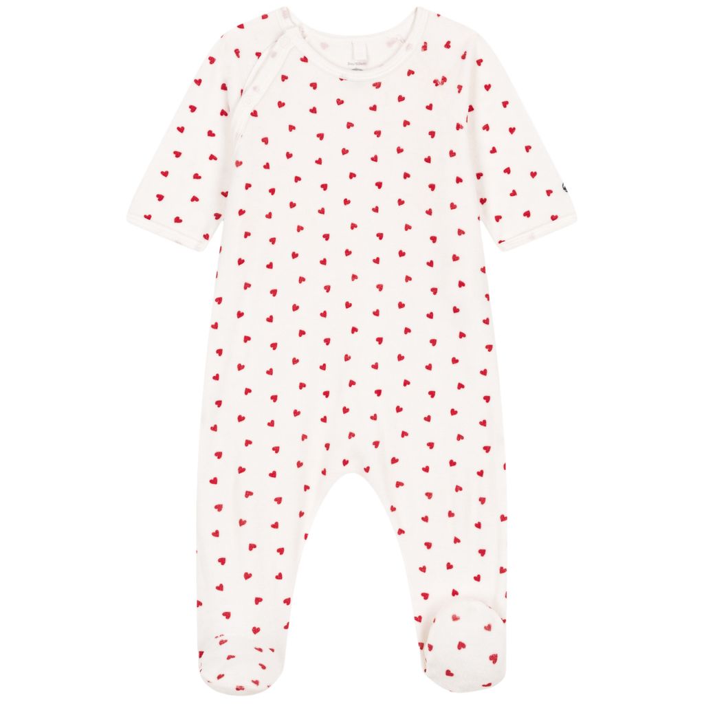 Petit Bateau Hjärtmönstrad Velour Onesie Marshmallow Terkuit Newborn Vit nyfödd unisex