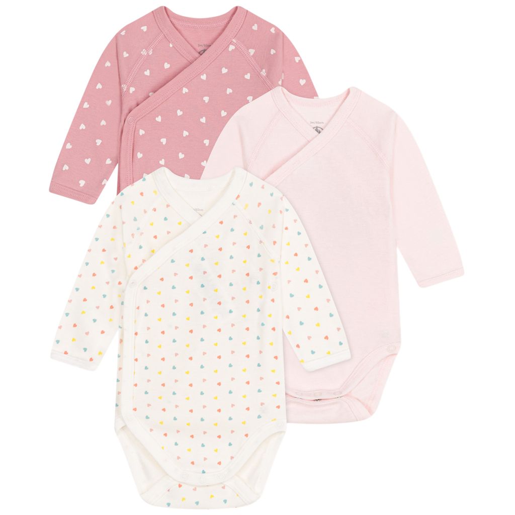 Petit Bateau 3-pack Baby Bodys Rose Charme Marshmallow Newborn Rosa nyfödd kvinna