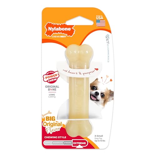 Nylabone Original Bone Power tuggleksak för hundar, hållbara och tuffa hundleksaker för Aggressiva tuggare, original smak, X-Small/liten - upp till 15 kg, 1 antal