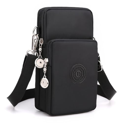 JANKS Damaxelväska – crossbody bag för kvinnor med mobiltelefonplånbok, nylon liten mobiltelefonplånbok, armväska, mini mobiltelefon axelväska dörr mobiltelefon under 6,7 tum, 010 svart, XL