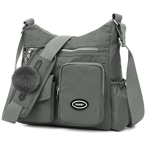 SUKRY Nylon Crossbody Bag for Women with Anti theft RFID Pocket, Waterproof Shoulder Bag Travel Purses and Handbag (Grey-1)