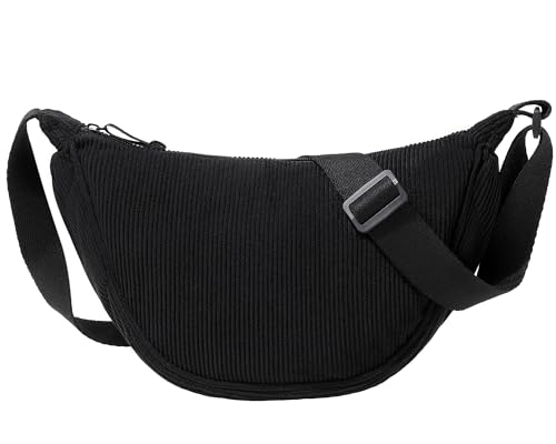 Micmores Axelväska dam midjeväska dam snygg, nylon crossbody bag dam halvmåne väska axelväska med axelrem justerbar, Y2K midjeväska för varje tillfälle, Black 2, Axelväska