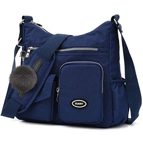 SUKRY Nylon Crossbody Bag for Women with Anti theft RFID Pocket, Waterproof Shoulder Bag Travel Purses and Handbag (Dark Blue)
