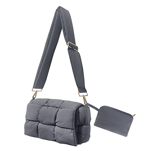 NAARIIAN puffer woven shoulder bag padded cassette handbag with coins organizer nylon light weight women crossbody purse(Grey)