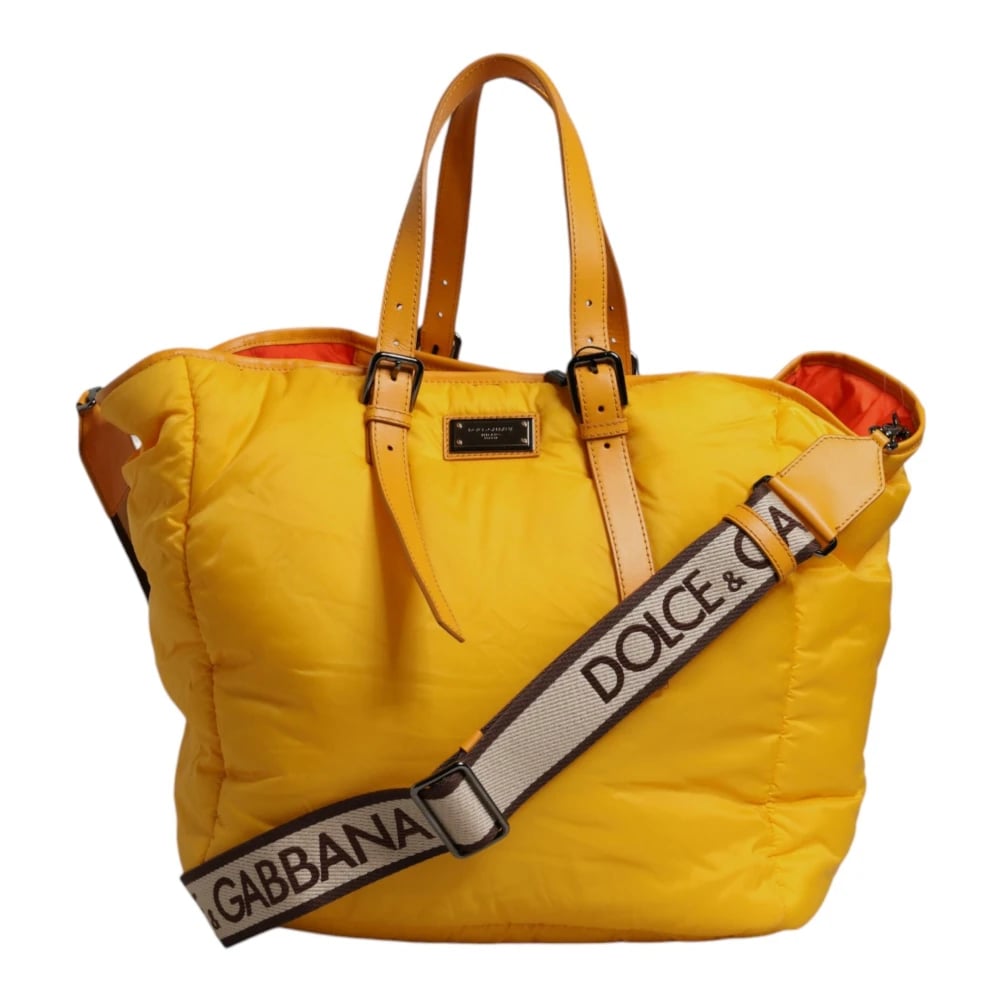 Dolce & Gabbana, Väskor , Dam, ONE Size, Nylon, Gul Orange Nylon Logotyp Handväska Axelremsväska Duffle Bag