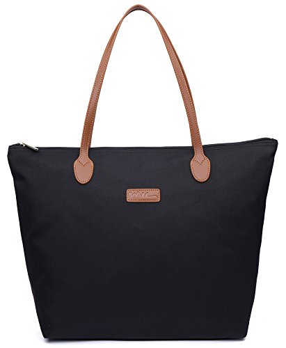 NNEE Vattentålig lättviktig nylon tygväska handväska, Svart, Medium