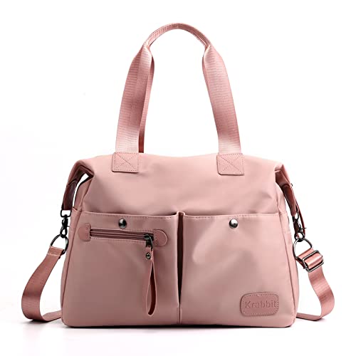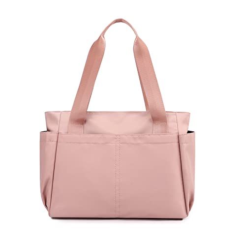CORIOS Damaxelväska nylon handväska vattentät handväska ledig axelväska lätt bärkasse bärväska väska handtag väskor för arbete skola shopping resa vardag, ROSA, L, Avslappnad väska med flera fickor