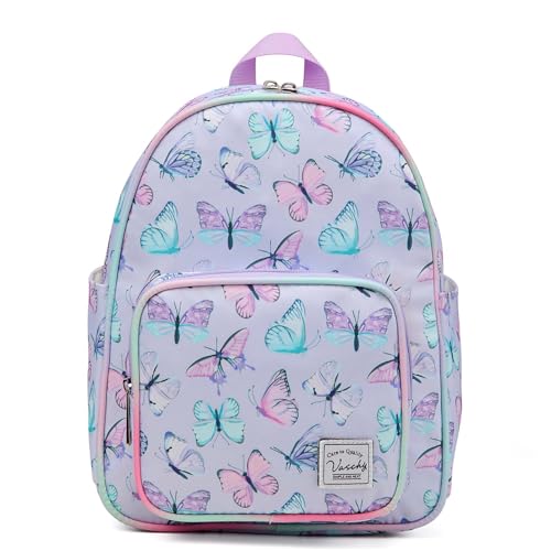 VASCHY liten ryggsäck för kvinnor, söt mini lätt nylon reseryggsäck handväska för tonårsflickor, Lavendel fjärilar