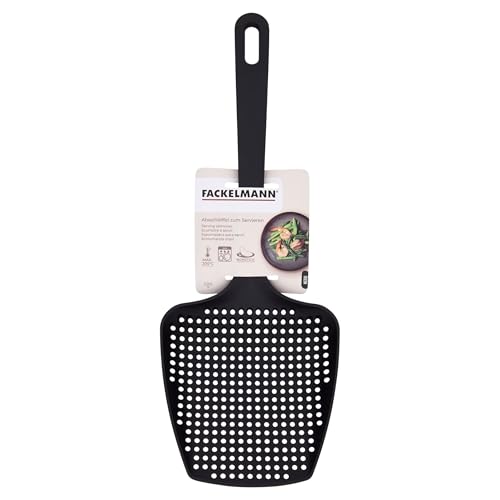 Fackelmann Lång perforerad skopa av nylon, non-stick material, värmebeständig upp till 200°, diskmaskinssäker, matt svart, storlek 31 x 7,3 cm