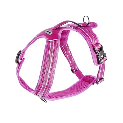 Record Dolomit hundsele – fuchsia färg – storlek XL – omkrets 80–92 cm – material: flätad nylon med reflekterande band 3M ScotchLite