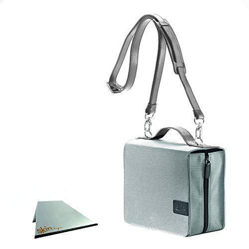 Vackert fältskinn, (nylonläder) silversten (stengrå) med aluminiumstöd: Bokfodral-väska med aluminiumbokstöd och bärrem i material nylon och läder, färg silversten (stengrå)