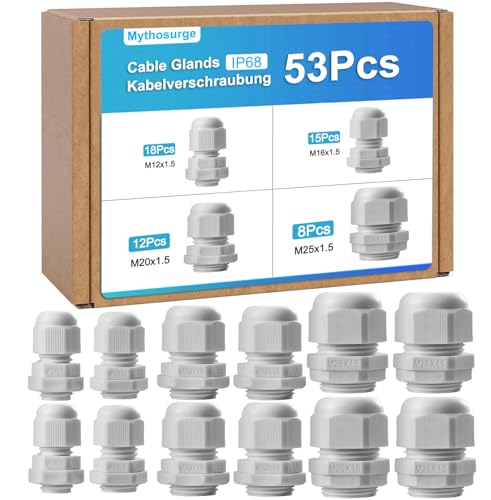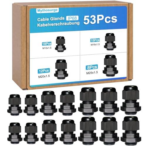 53 stycken kabelskruvar M12 M16 M20 M25, IP68 vattentät kabelgenomföring, kabelskruvar för utomhus trädgård kopplingsbox, kopplingsdosa, plast nylon kabelgenomföring svart