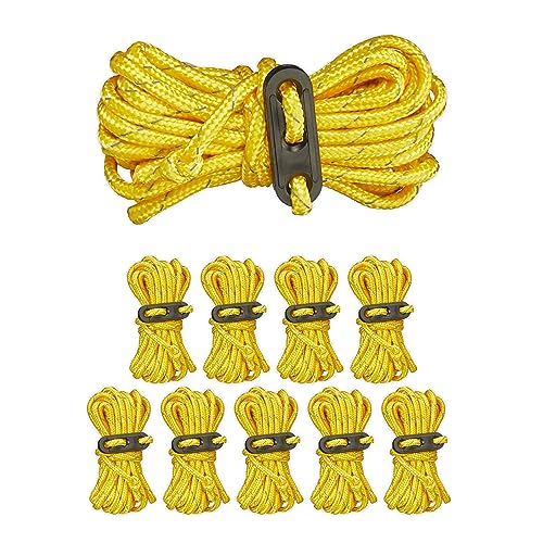 Relaxdays Tältspännlinor, set om 10, reflekterande, 3,8 m lång, för camping, spännlinor med repspännare, gul, nylon, plast
