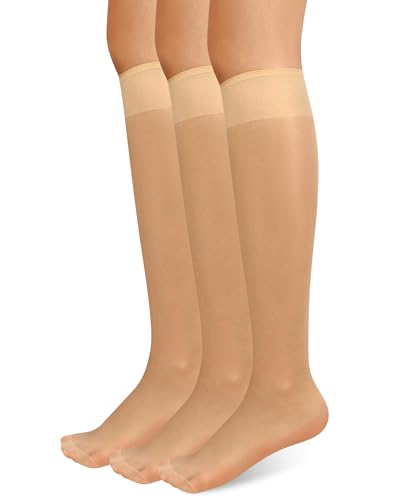 Loiluliy 3 par 20 DEN knästrumpor dam nylonstrumpor dam transparent svart slitstark tryckfri komfortlinning fina strumpor, ambra, one size