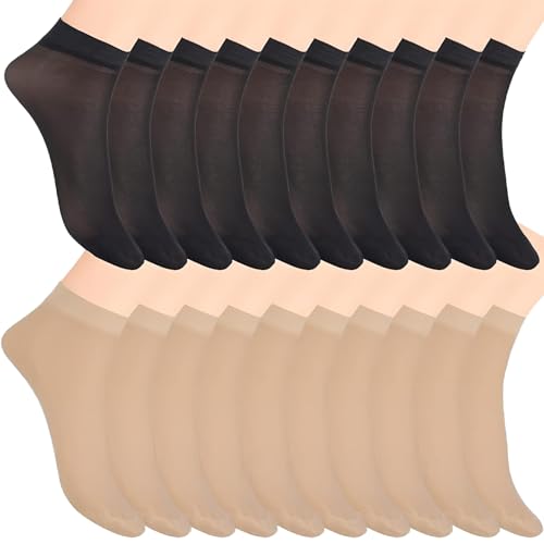 JYJLLM 20 par nylonstrumpor för kvinnor tunna pop genomskinliga ankelstrumpor med hög strumpbyxor silkiga andningsbara strumpor för kvinnor flickor, popstrumpor kvinnor fotled, förstärkt tå för