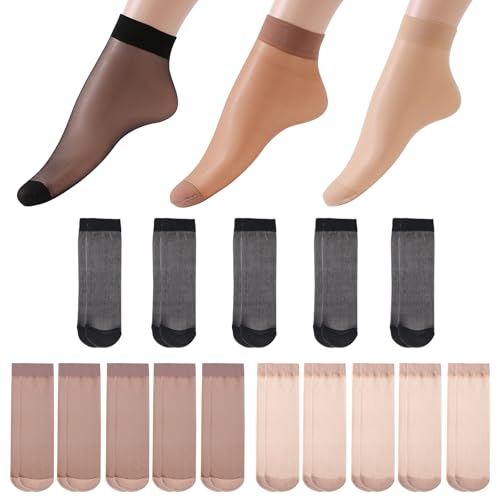 ZMDMAH 12 par nylonstrumpor, dam, silkesfin bomullssula 20 DEN genomskinliga fina strumpor, lätta, glänsande förstärkta tår med