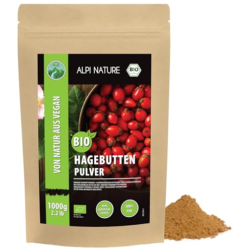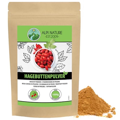 Alpi Nature EKOLOGISKT nyponpulver (1kg) från kontrollerad ekologisk odling, glutenfritt, laktosfritt, laboratorietestat, veganskt, 100% naturligt, skonsamt malet, givetvis utan tillsatser, nyponmjöl