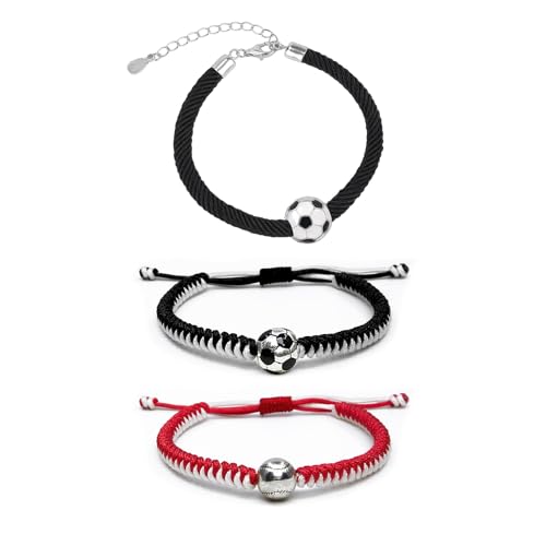 Set med 3 trendiga flätade armband för pojkar och flickor – fotbollsfans, boll- och justerbara kopparstänger