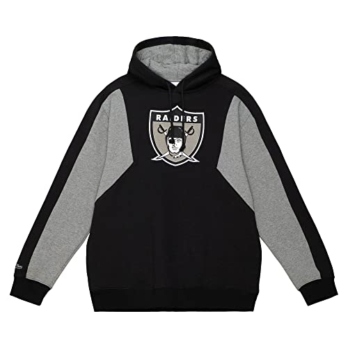 Mitchell & Ness NFL Color Blocked huvtröja 2.0 – huva med snören, färgkontrasterande ärmar, män, kvinnor, barn, unisex, vår, sommar, höst, vinter, Oakland Raiders | Svart/Grå, S