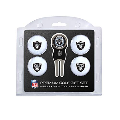 Team Golf NFL Oakland Raiders golfbollar i regleringsstorlek (4 räkna) och divotverktyg med avtagbar dubbelsidig magnetisk markör