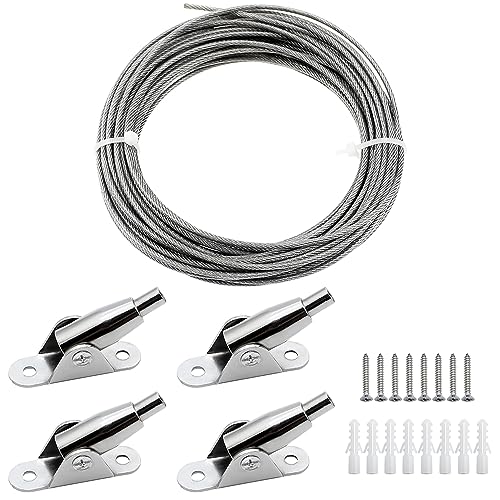 DXLing 2mm x 10m Picture Frame Hanging Wire 304 Stainless Steel Wire Spool PVC Coated Heavy Duty Photo Hanger Wire with Wire Rope Fixed Codes and Screws for Hanging Clothes Curtain Hold Up to 30 KG