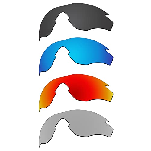 EZReplace linser ersättning för Oakley M2 ram OO9212 solglasögon (polariserade linser), Kolsvart + isblå + eld röd + metall silver, en storlek